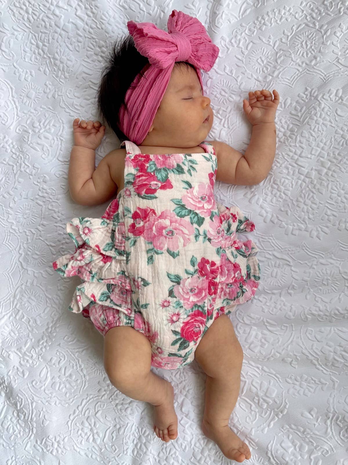Florence Floral Embroidered Organic Pointelle Baby Jumpsuit