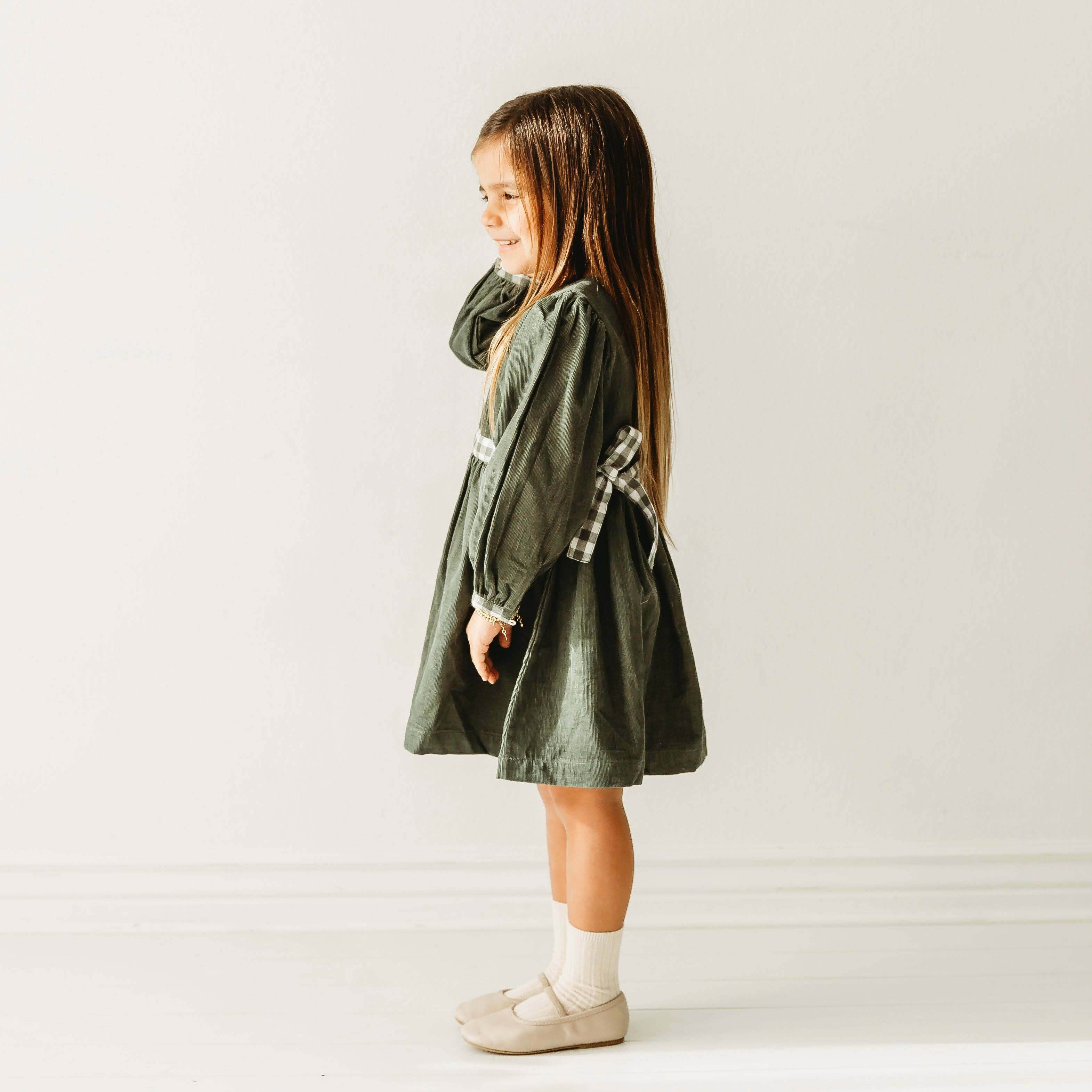 Dress your little one for any occasion with this Jade Green Corduroy Gingham Long Sleeve Dress! Way more stylish than your average dress, this classic green corduroy and gingham look will have your little girl stepping out in style. Cotton fabric is soft and cozy - perfect for a holiday family outing! Match with an available sibling look for a coordinated cuteness overload!