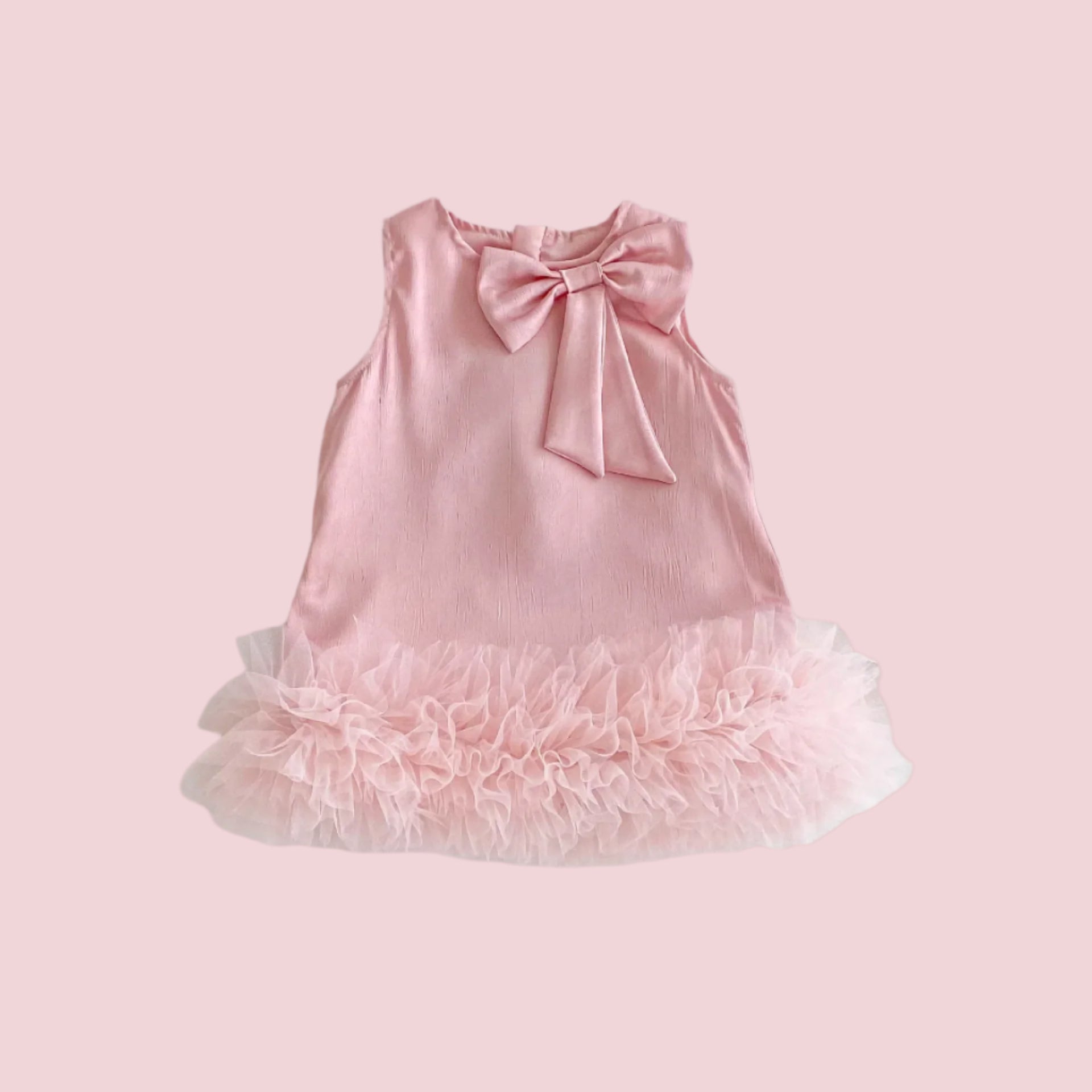 The Berf Dress is a charming choice for your little one, featuring a big bow at the collar that adds a sweet, playful touch. Soft ruffles along the bottom create a fun, twirl-worthy silhouette perfect for any occasion.