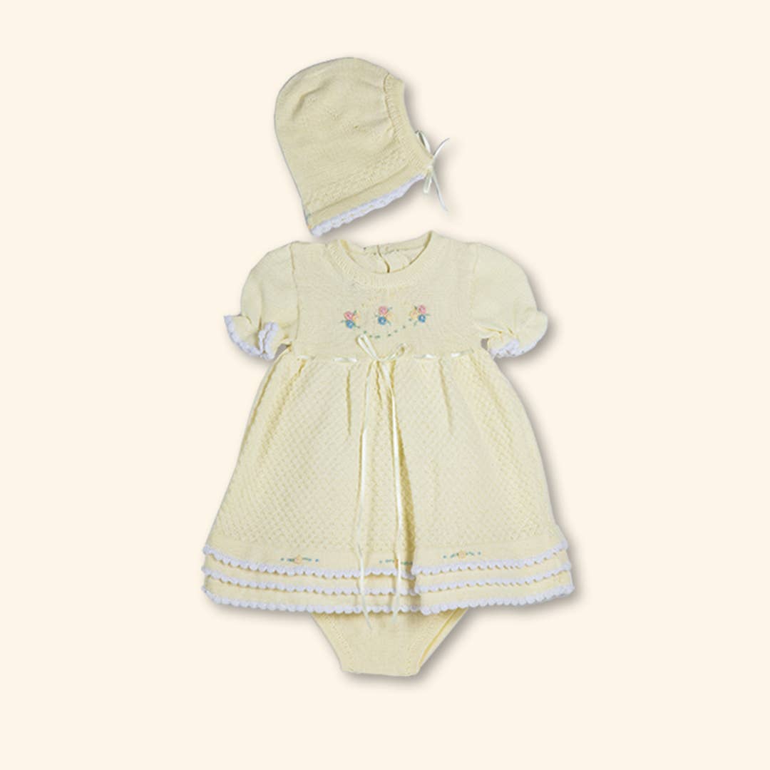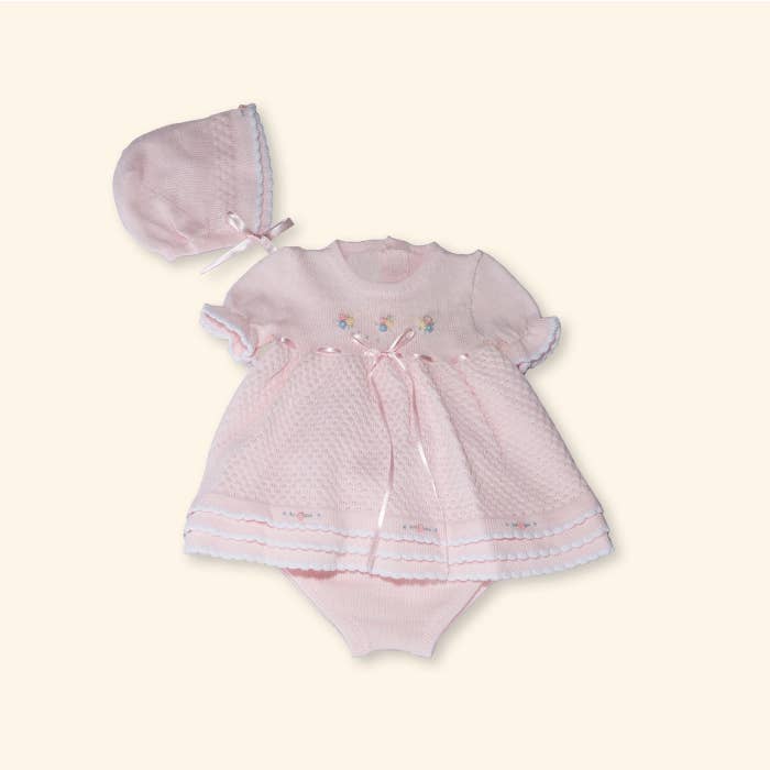 Knitted Dress with bonnet and flower details