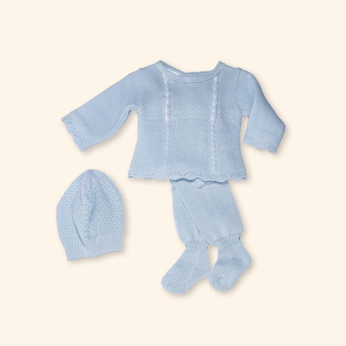 Blue knitted for New Born in 100% cotton!!!! Soft and cozy for the baby boy.