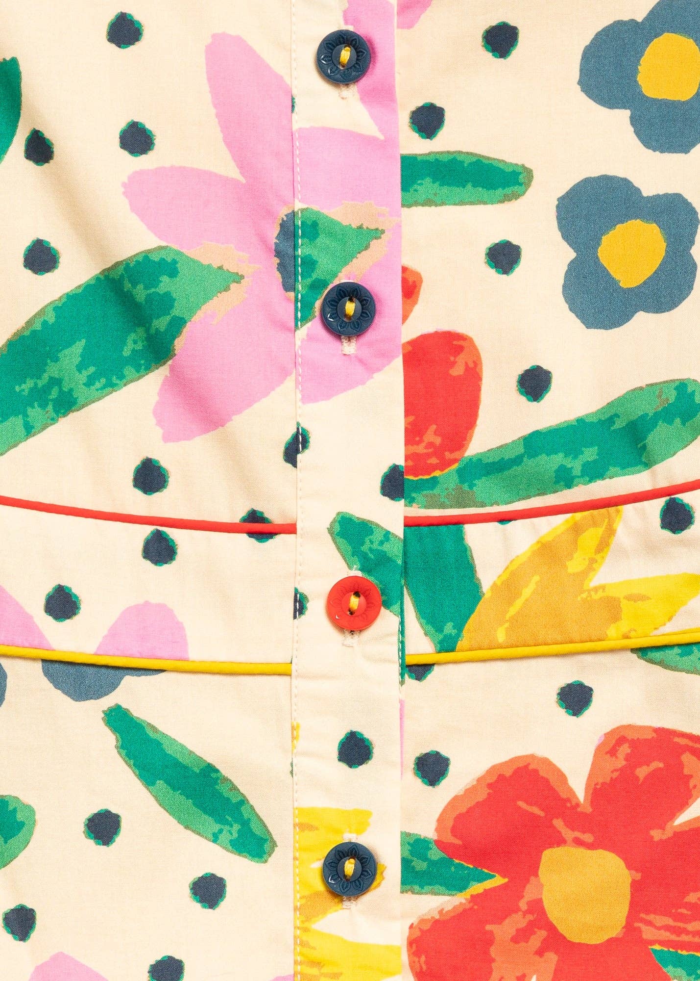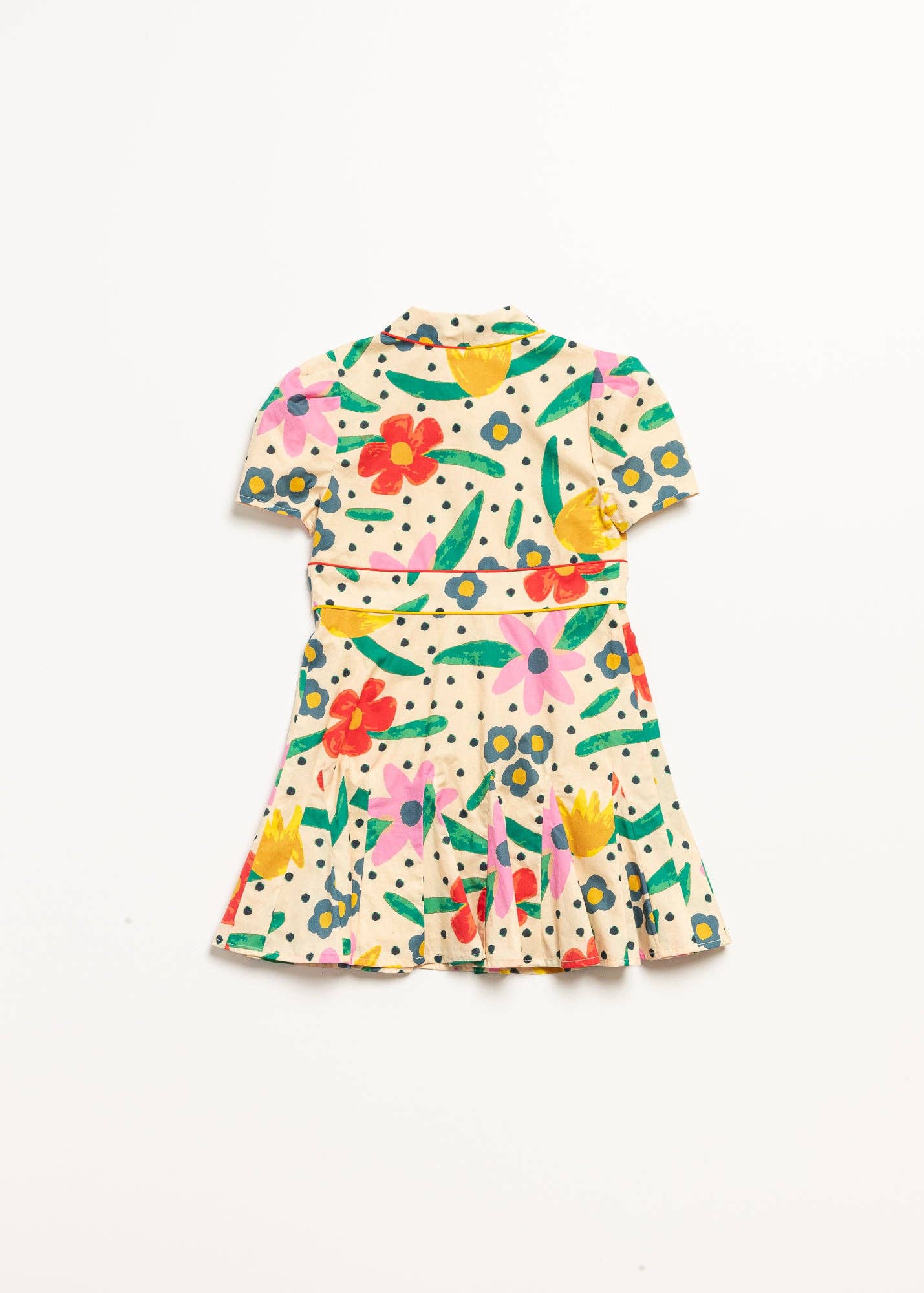 Honor roll is around the corner and our gal Eva knows she’s made the list! She’s not the only one getting full marks though…meet our wonderful Wunderkind Dress. From the contrast piping in red and gold to the all-over artistic floral print finished with a sophisticated, godet pleated skirt, this smart, buttoned-up style gets an A+ for detail. Model is 4’5” and wearing a size 8.